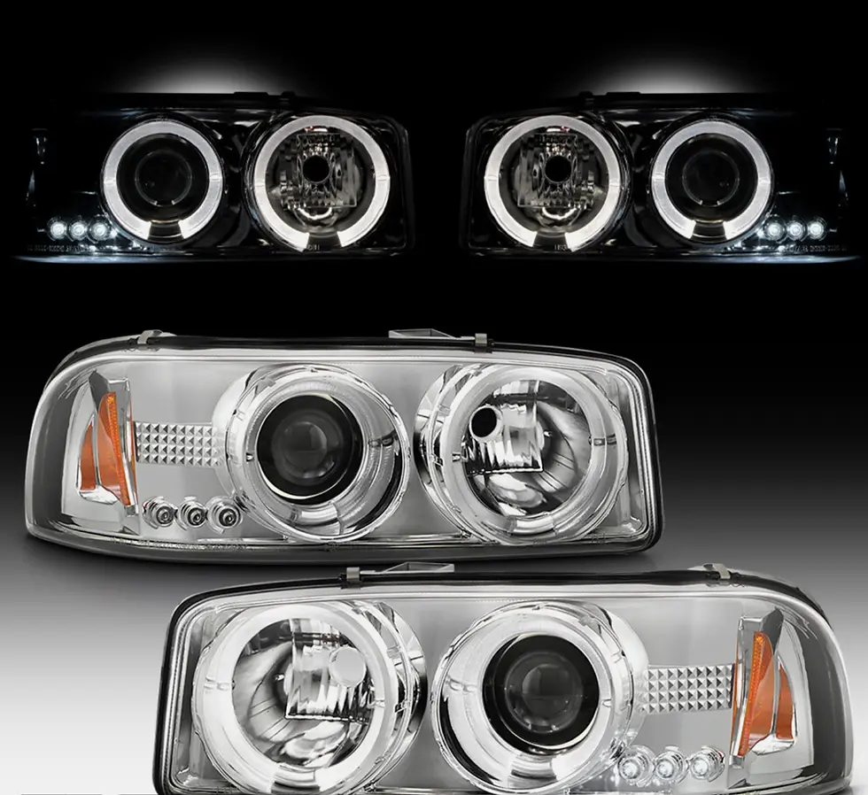 1999-2006 GMC Sierra Chrome LED Halo Projector Headlights